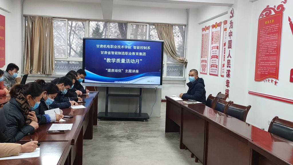 12月7日下午,智能控制学院在2-108室举行了“教学质量月”系列活动——“提质培优”主题讲座,讲座由智能控制学院主任王泽荫主讲,智能控制学院全体教师聆听了讲座。